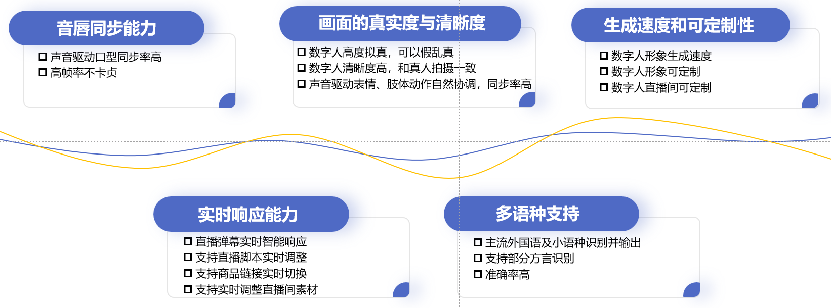 画面的真实度和清晰度是数字人提升直播用户视觉体验,成功建立数字人直播间的重要因素。在清晰度层面:通过人工智能技术可以实现对数字人画面的实时监测,杜绝画面模糊,实现和真人拍摄接近的效果;在真实度层面:数字人可以在表达中结合丰富的肢体动作,如挥手、摊手、点头、皱眉等,并通过毫秒级别的时间戳,结合多模态模型等技术,实现音画同步,让用户感受到更加真实的直播体验。