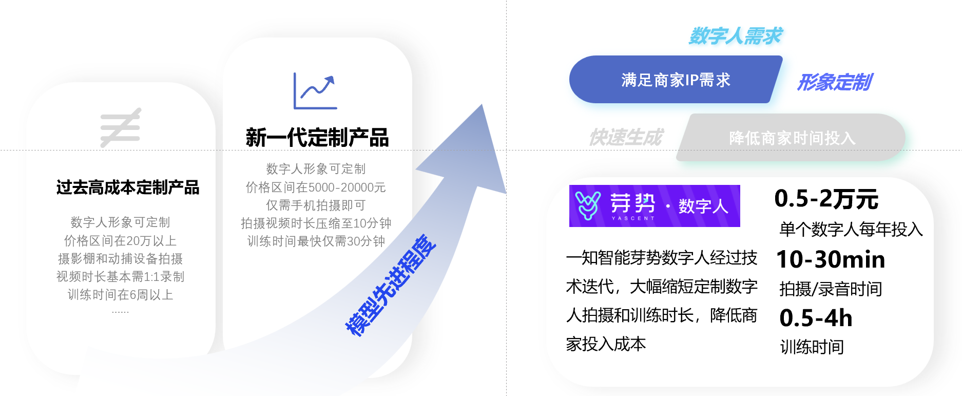 好的数字人应在满足商家定制形象的基础上,同时降低商家的设备、时间成本投入。先阶段一线数字人厂商已经可以将数字人录制时间压缩至半小时内,训练生成时间压缩至4小时内,并且用手机就可以拍摄样例视频,降低用户应用门槛。