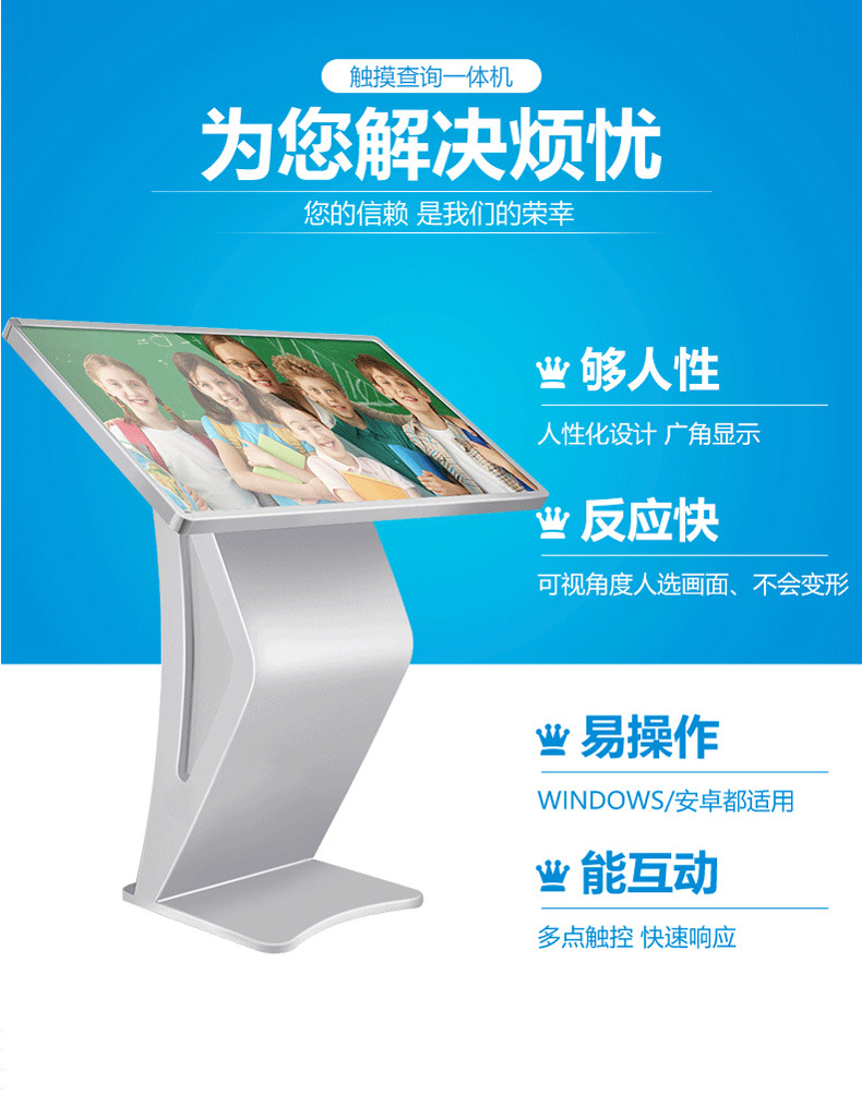 安全稳定:以往大尺寸触摸屏用双面胶粘贴在电视机上,时间长了受热会掉落,而定制的装饰外框把电视机和触摸屏有效的结合起来,永不掉落,安全稳定