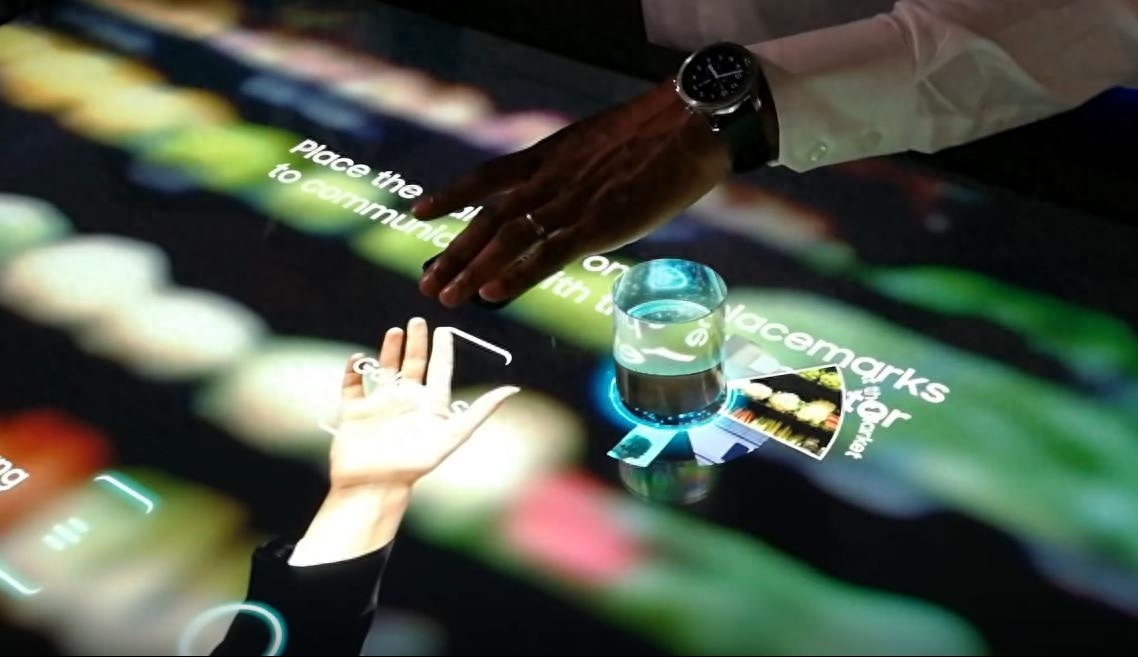 产品功能:智慧物体识别桌的四周有不同大小的互动模块,每个模块代表着不同的内容,将模块放在屏幕上时,屏幕会自动识别每个模块相对应蕴含的内容,给予不同的显示。用户可在后台中提前预设好展示的内容,以便观众点击。而且每个模块可以含有方向识别,当用户旋转模块时,屏幕会做出相对于的变化。